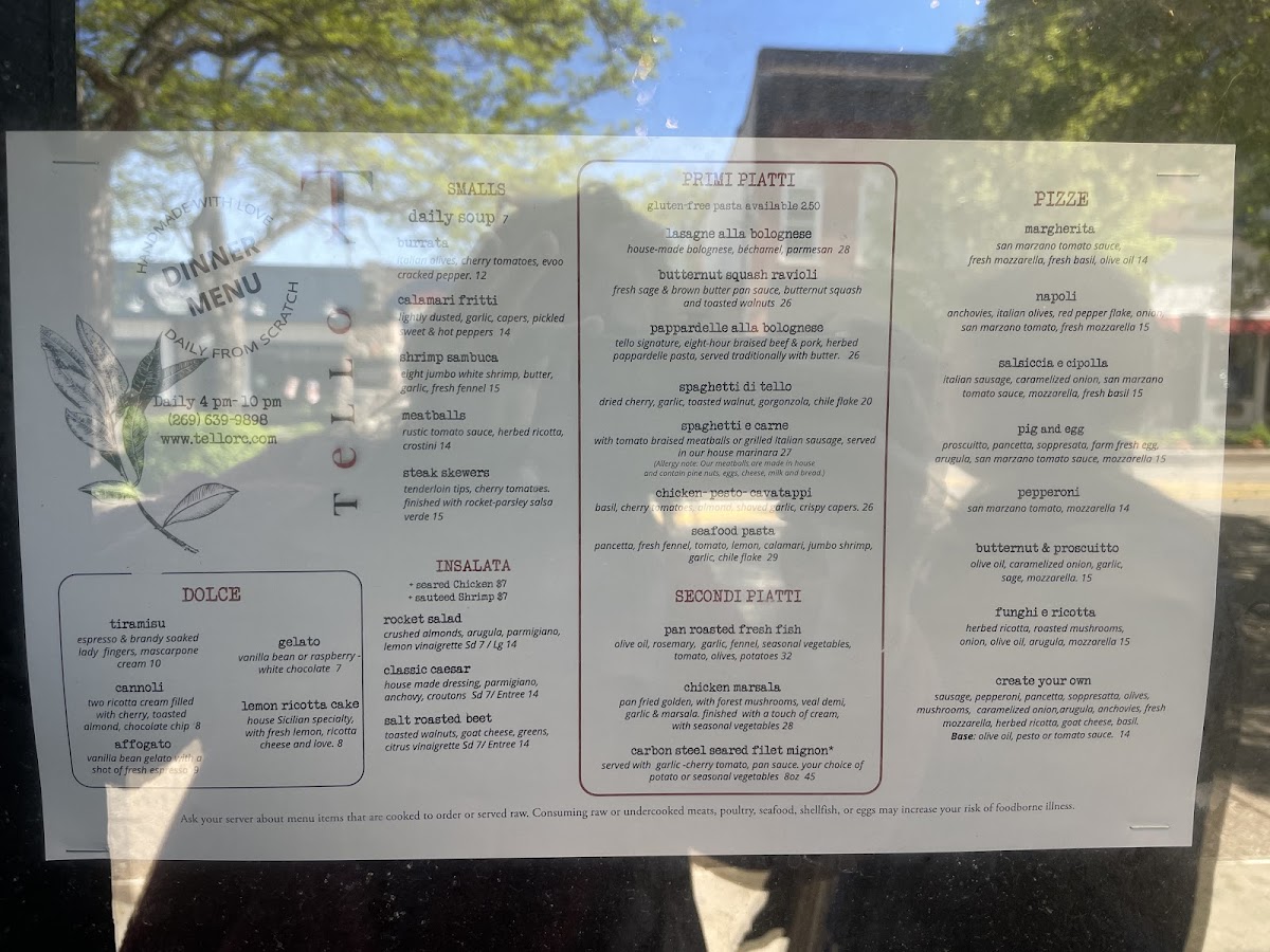 Welcome to Tello Italian Bistro, a hidden gem located at 524 Phoenix St, South Haven, MI. This bistro's menu showcases authentic Italian cuisine that delights food enthusiasts and casual diners alike. With a reputation for freshness and quality, Tello offers a vibrant selection of pizzas, pastas, and unique dishes that satisfy both adventurous appetites and traditional tastes.